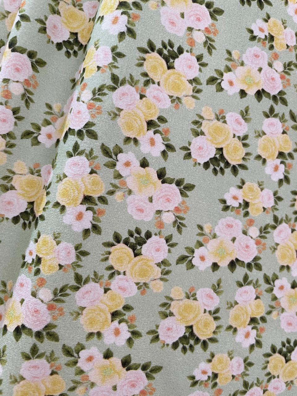 A tricoline de algodão com florzinhas brancas e amarelas sobre Fundo verde claro é muito bonita. Excelente para decoração e vestuário. A estampa tem cores firmes e pode ser usada na decoração da casa como nas toalhas de mesa, guardanapos, jogos americanos, etc.