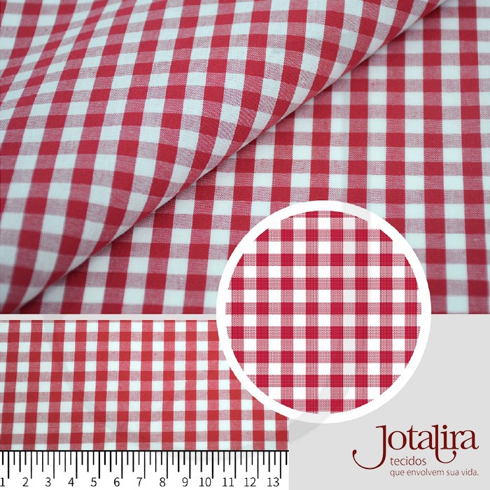 Tecido Tricoline Xadrez 8XM Vermelho Fio Tinto 100% Algodão