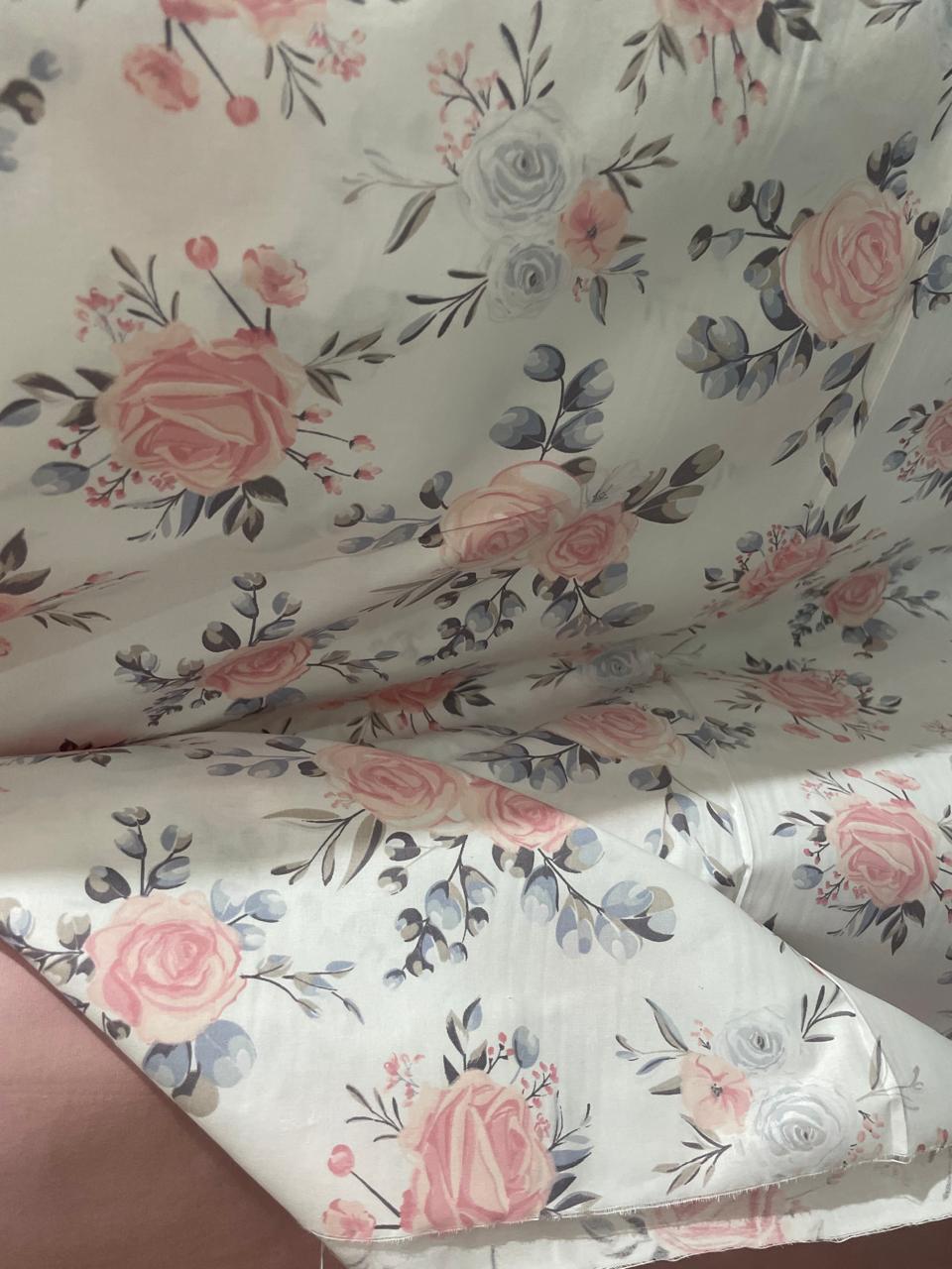 Tecido Percal 200 Fios Estampa de Rosas sobre Branco 100% Algodão 2,50 m de Largura