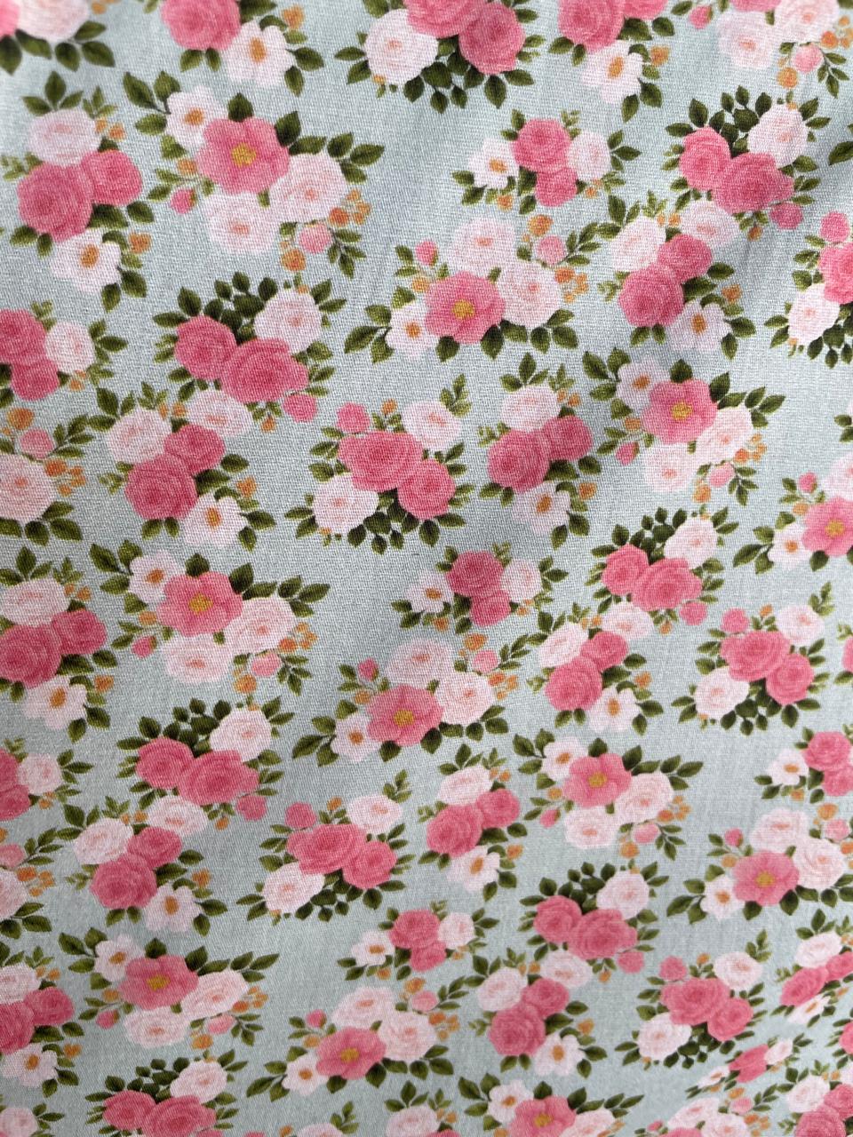 A tricoline com estampa de Buquês de Rosinhas sobre Fundo Verde Malva 100% Algodão é muito bonita. Excelente para decoração e vestuário. A estampa tem cores firmes e pode ser usada na decoração da casa como nas toalhas de mesa, guardanapos, jogos americanos, etc.