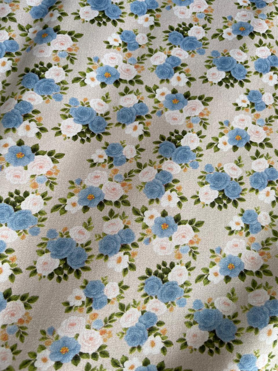 A tricoline de algodão com estampa de Buquês de Rosinhas Azuis e Brancas sobre Fundo Bege Claro 100% Algodão é muito bonita. Excelente para decoração e vestuário. A estampa tem cores firmes e pode ser usada na decoração da casa como nas toalhas de mesa, guardanapos, jogos americanos, etc.